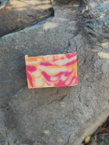 Ingredients; Mango butter, Olive Oil, Palm oil, Coconut oil, sunflower oil, watermelon, water, lye.